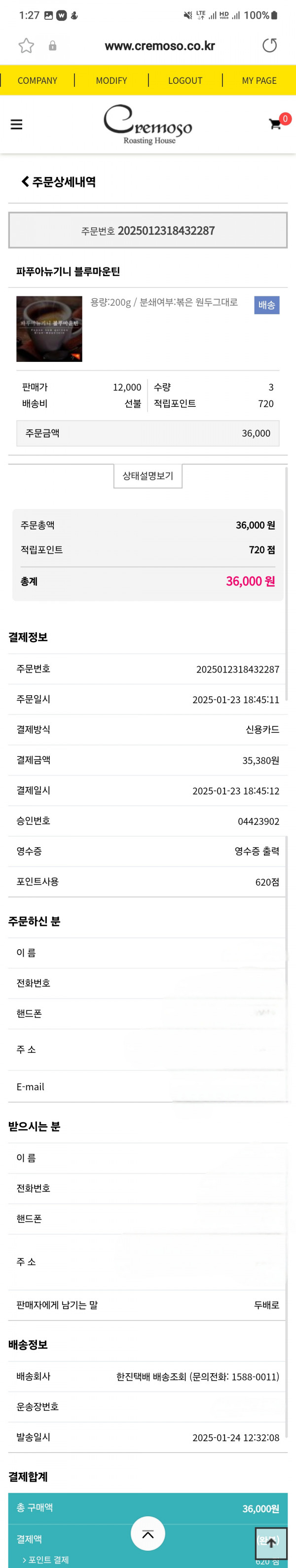 안녕하세요. 블루마운틴 두배로 이벤트 주문했는데 3봉만 도착하고 3봉이 누락됐습니다.